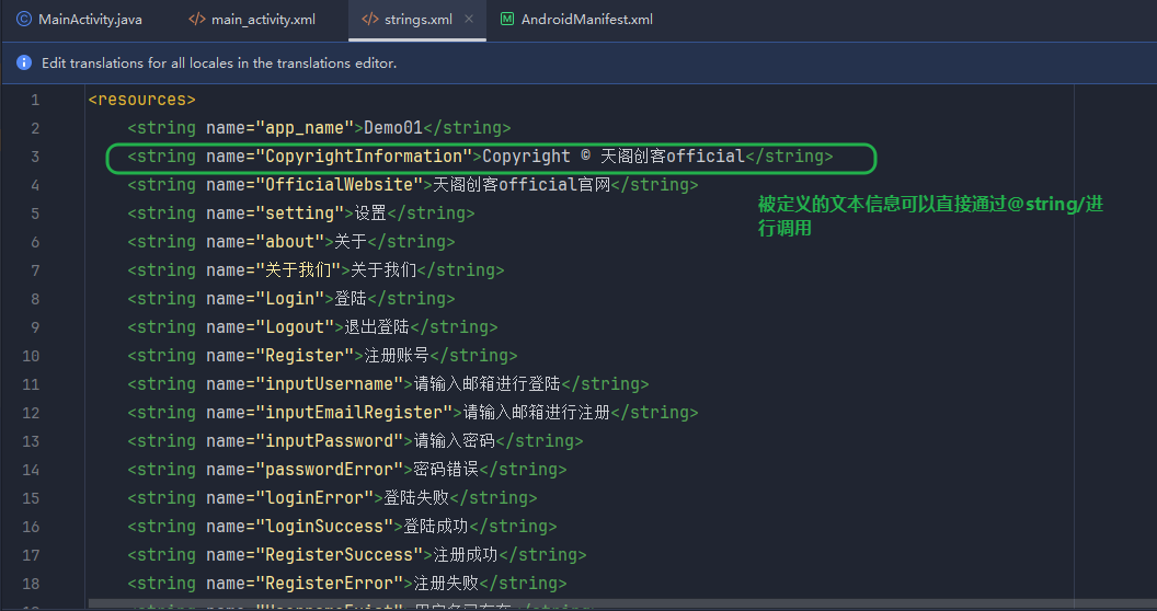 | 7 | **values/**包含简单值的 XML 文件,例如字符串、整数和颜色。 例如,以下是您可以在此目录中创建的资源的一些文件名约定 −arrays.xml 用于资源数组,并从 R.array 类访问。integers.xml 用于资源整数,并从 R.integer 类访问。bools.xml 用于资源布尔值,可从 R.bool 类访问。colors.xml 用于颜色值,可从 R.color 类访问。dimens.xml 用于尺寸值,并从 R.dimen 类访问。strings.xml 用于字符串值,并从 R.string 类访问。styles.xml 用于样式,并从 R.style 类访问。 |