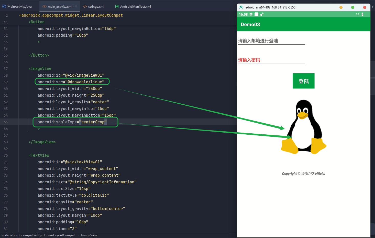 ScrollView是垂直滚动视图。我们只需要修改上面的标签即可实现