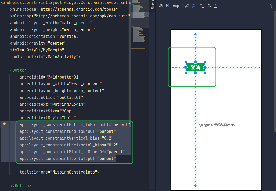 我们需要在XML中来定义按钮点击的效果显示,代码如下: